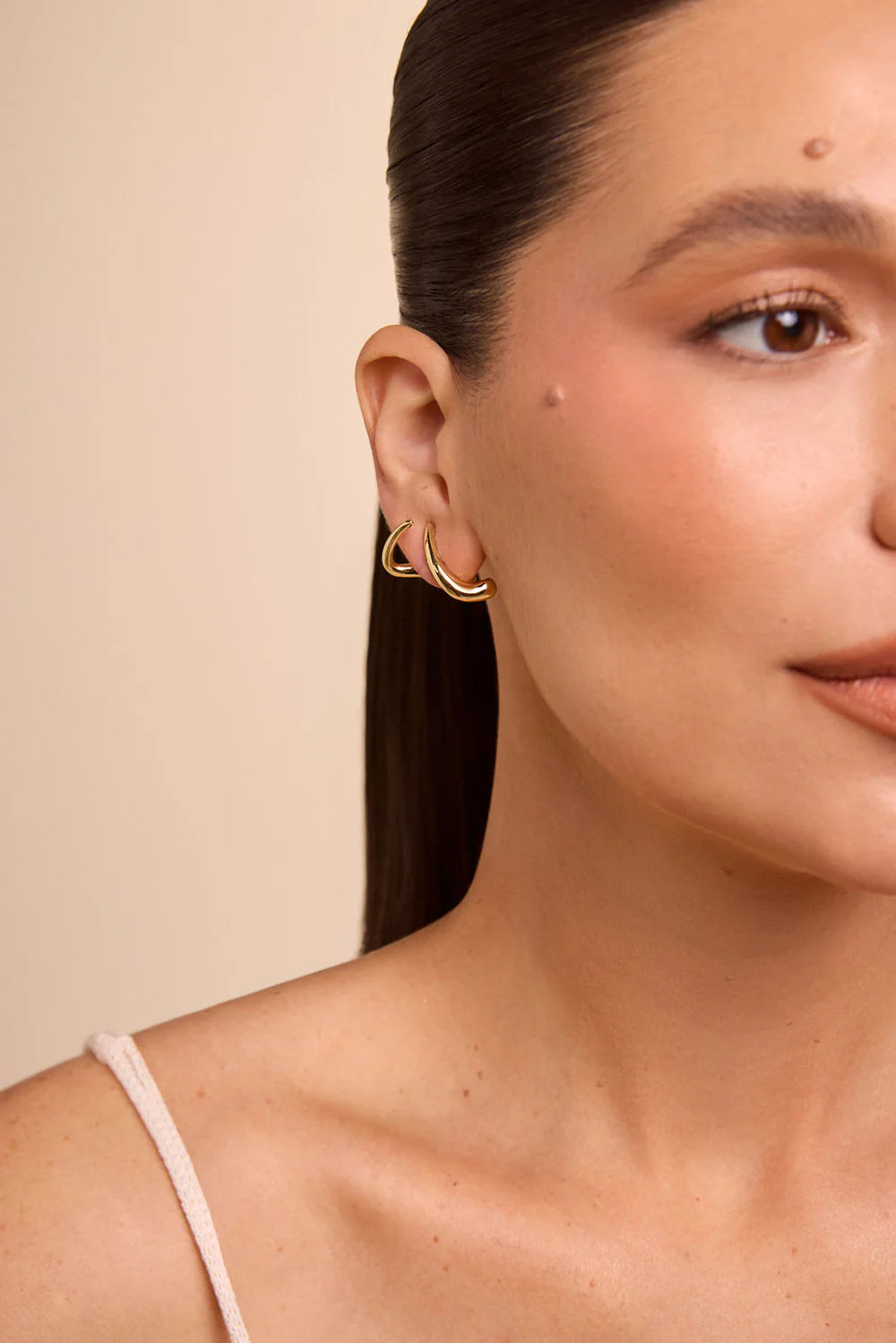 Peças com uma leitura poética, unindo o metal orgânico com referências liquidas que transmitem leveza e modernidade, o brinco earjacket delicado veste as orelhas com estilo e sofisticação.